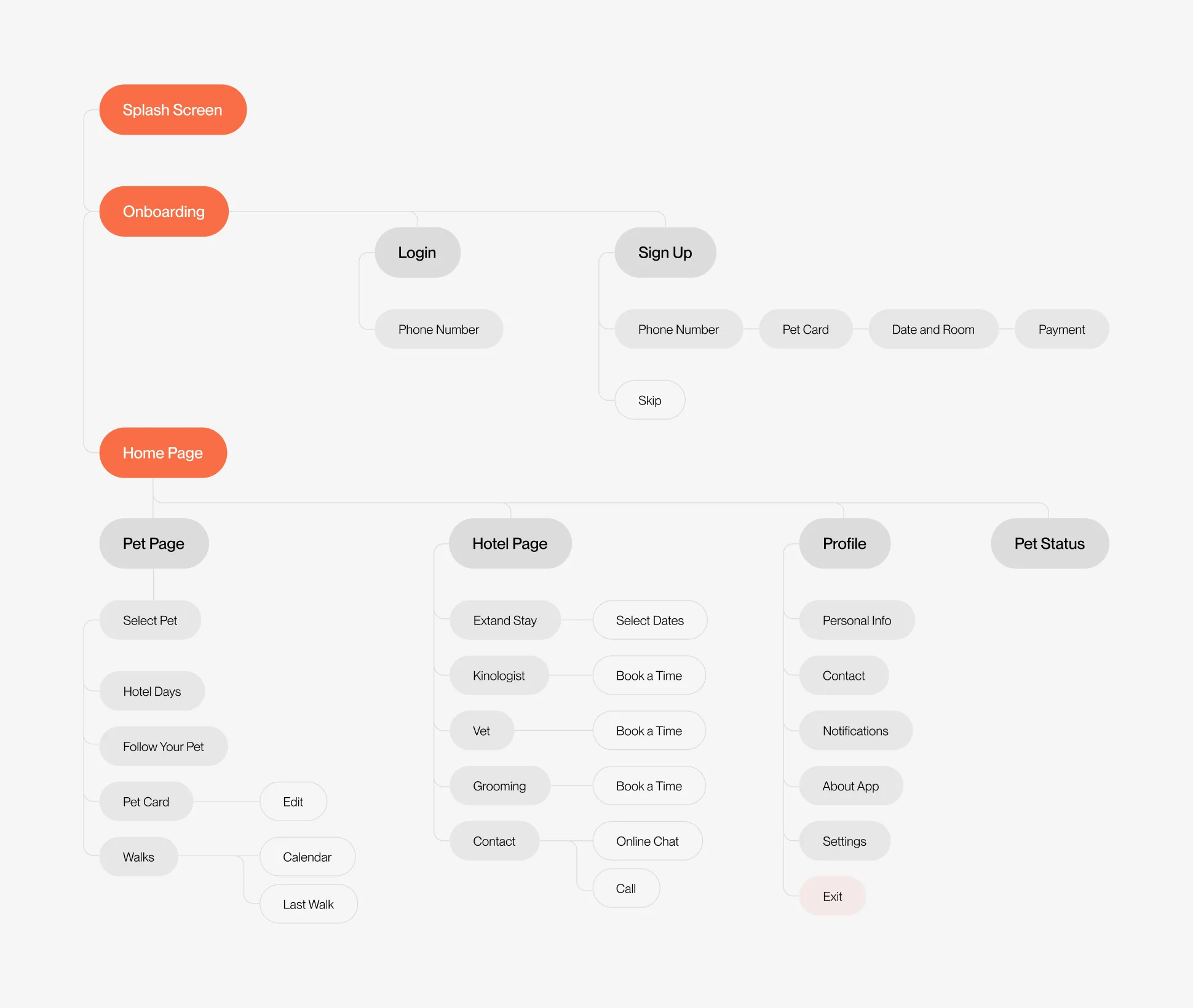 Pet care is not just a service, but a matter of trust. The challenge was to design a system that handles complex flows like booking, tracking, and updates, while keeping the experience warm, clear, and reassuring for users.